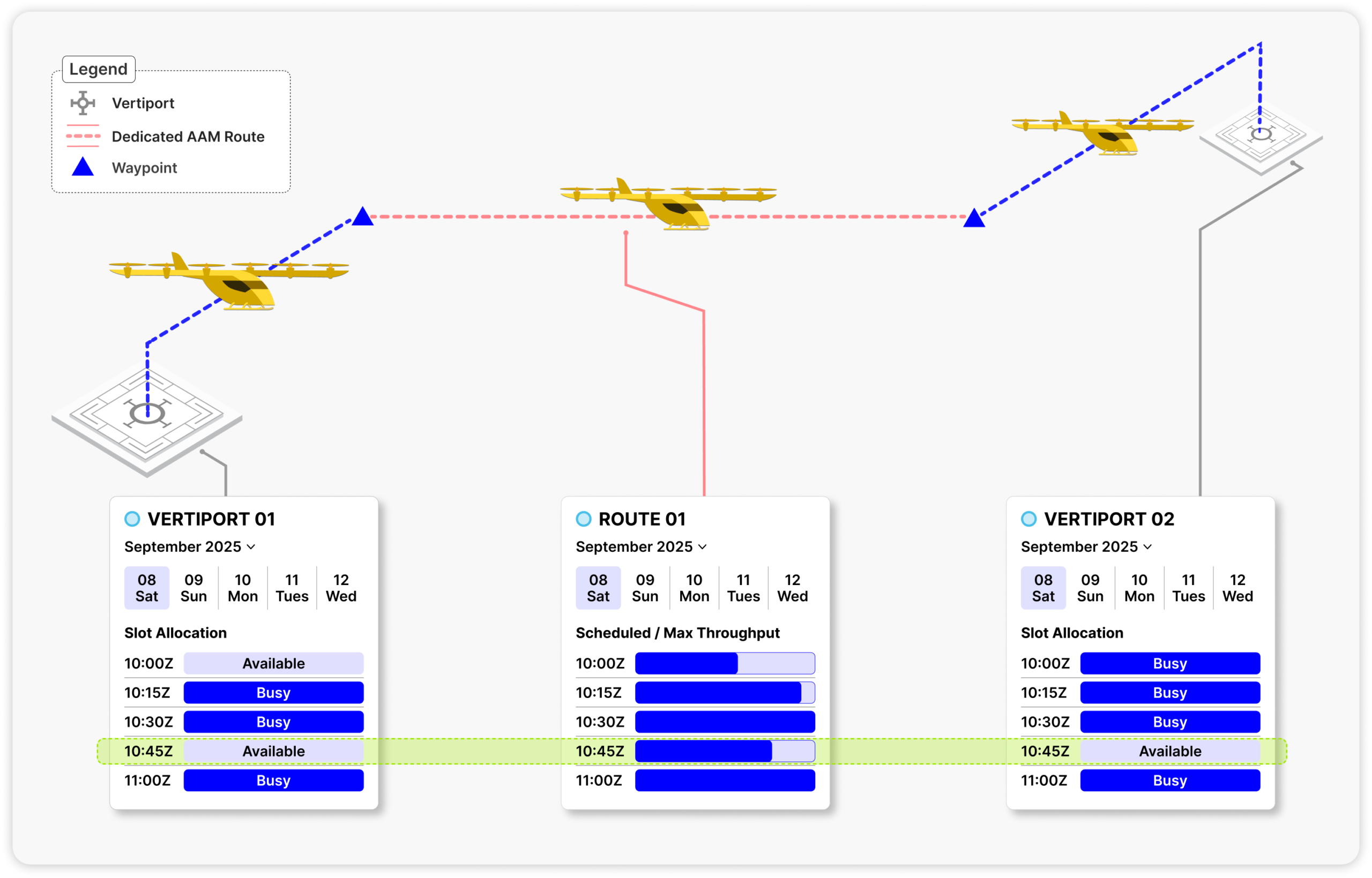 The automation handles the systematic and predictable aspects of air traffic organization. It doesn’t replace human judgment in complex situations. Instead, it creates conditions for safe, efficient, high-density operations, giving us a path to scalable UAM operations beyond today’s airspace constraints.